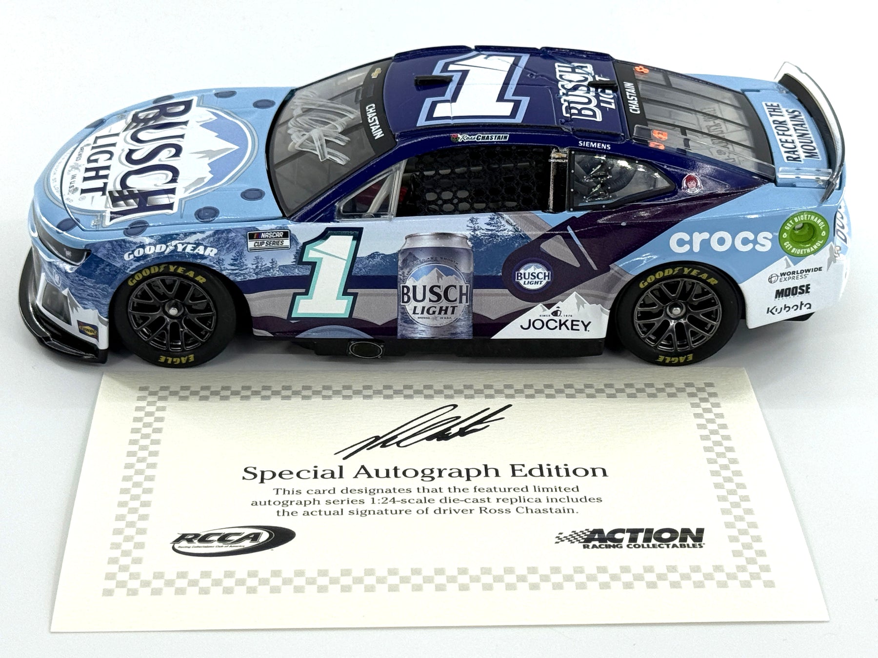 Ross Chastain Autographed 2024 Busch Light Crocs 1:24 Nascar Diecast